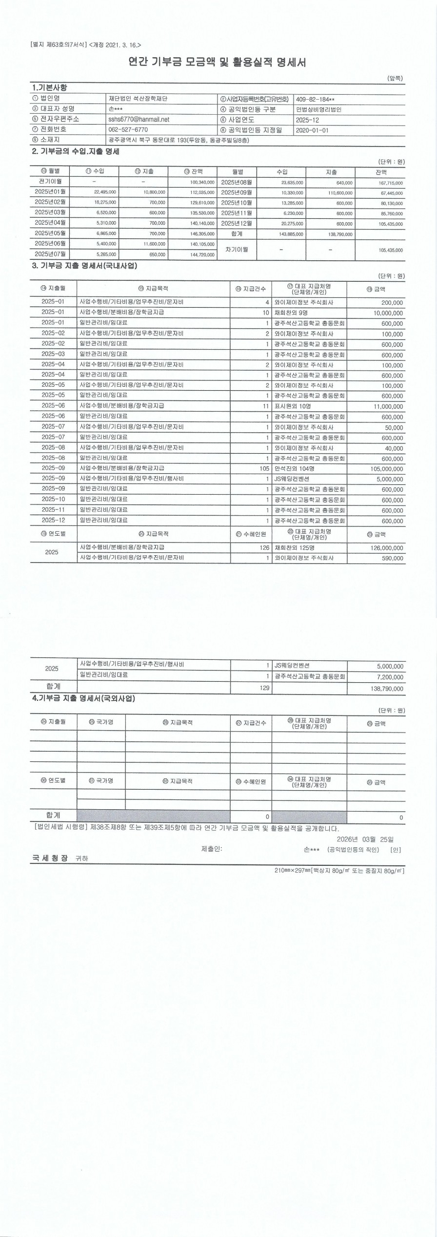 [공시]연간기부금 모금액 및 활용실적 명세서(2025년)